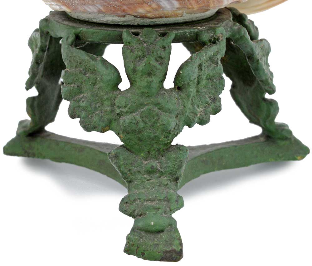 A wonderfully odd and interesting carved shell lamp. It's very well carved and so it's most likely an antique from the 19th century (later lamps tend to have less refined carving). It shows a lady and a faun or devil figure - probably this depicts "temptation".